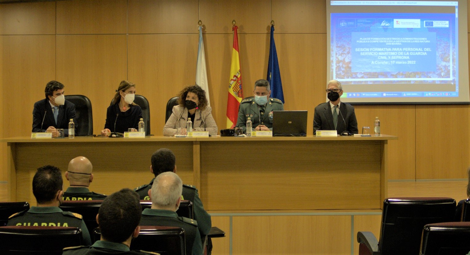 The first training session, held on March 17, was attended by the Provincial Maritime Services of the Civil Guard of the North Atlantic Marine Demarcation and personnel from SEPRONA of A Coruña. Among the contents of the training, the characteristics of marine biodiversity, the challenges of its conservation, the role of the marine Natura 2000 Network in Spain as the main instrument for the conservation of biodiversity, and the main aspects of the surveillance tasks that the State security forces can carry out in terms of the protection of marine biodiversity were addressed.